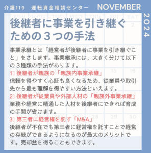介護施設の事業承継を成功させるための3つのステップ新着!!